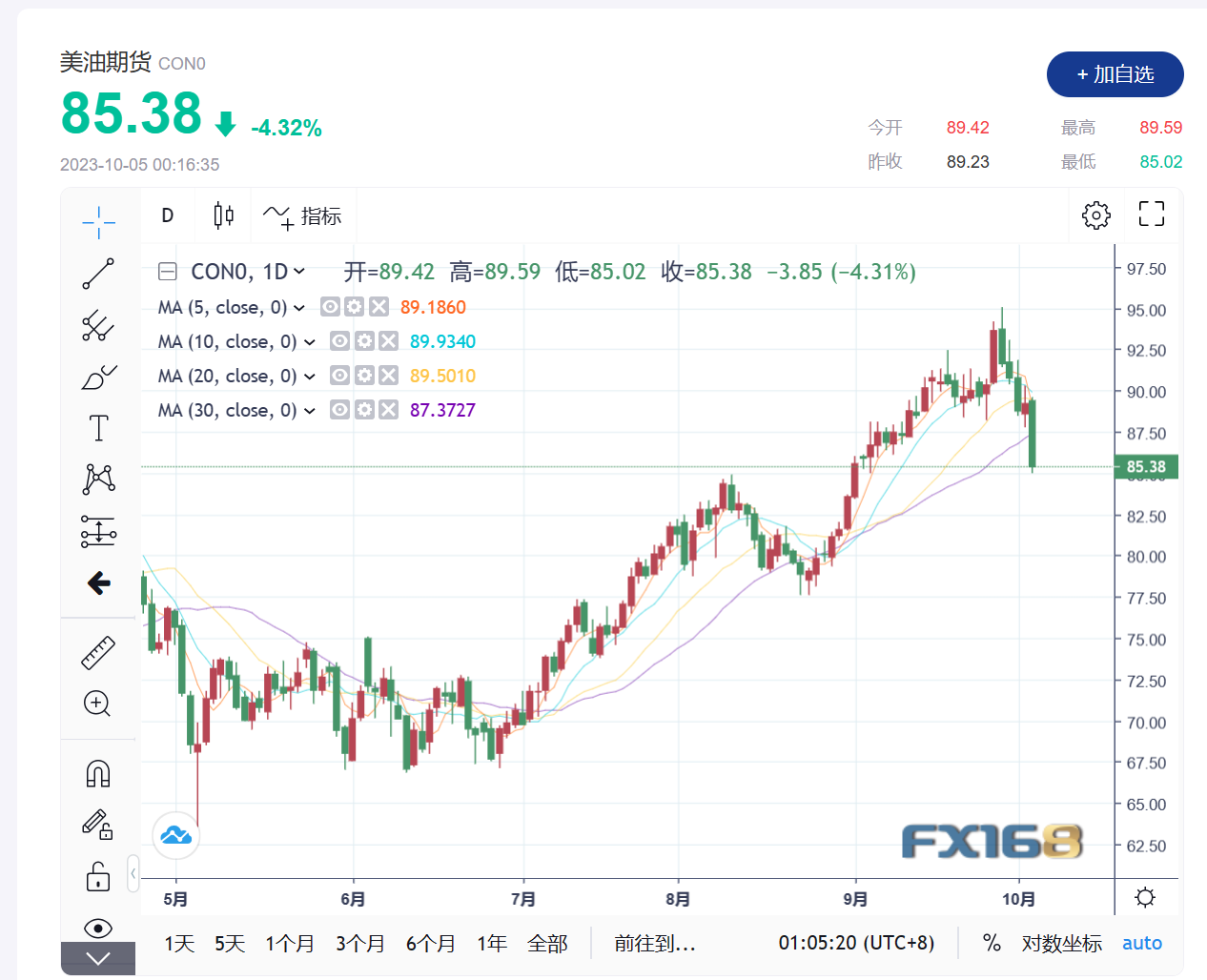 (美国西德克萨斯中质(WTI)原油期货走势图,来源:FX168)