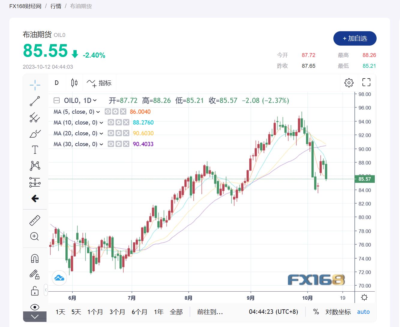布伦特原油期货下跌1.41美元/桶,至每桶86.24美元/桶,跌幅1.6%。