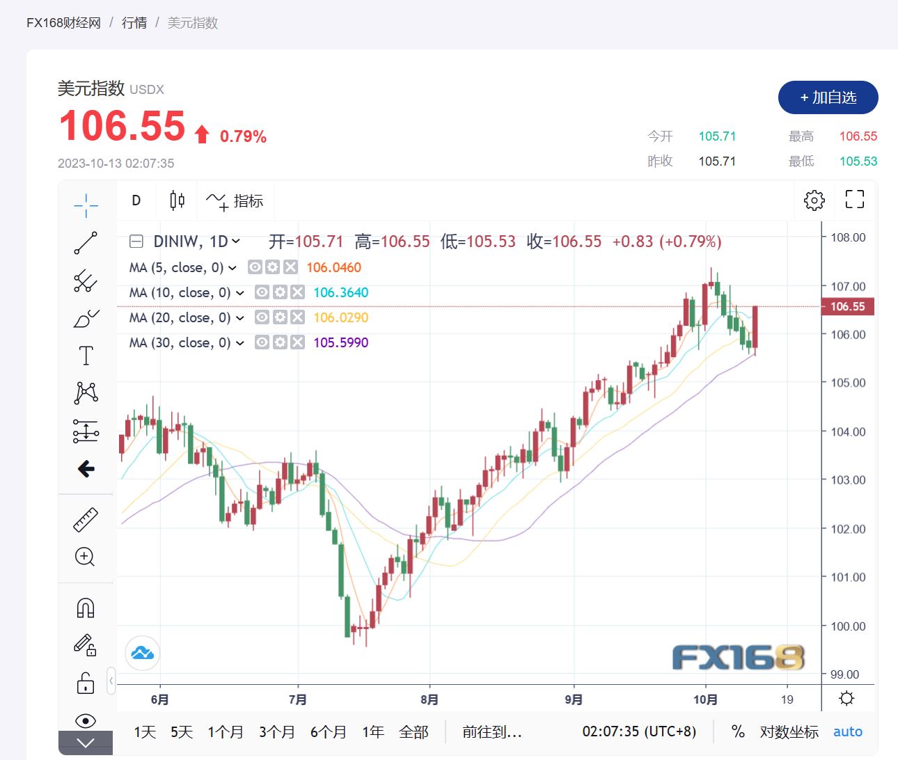 (美元指数走势图,来源:FX168)