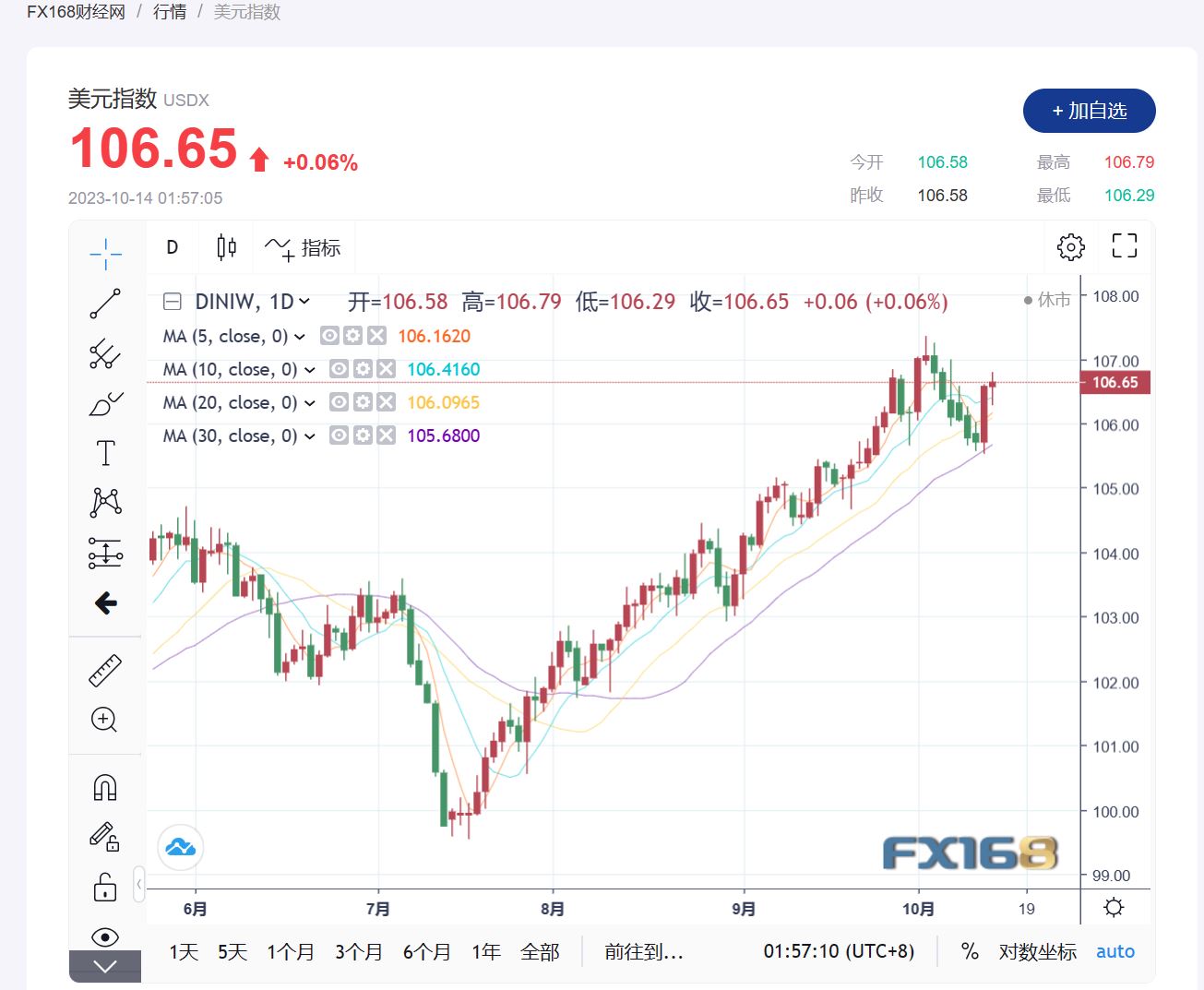 美元指数连续两天扭转跌势,涨幅为0.06%,现报106.65。