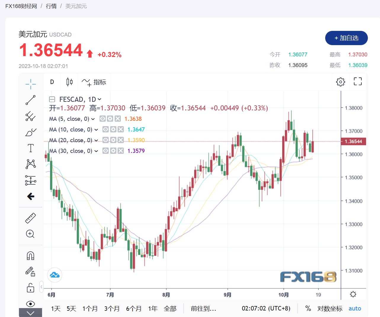在美国人口普查局报告强劲的消费者支出数据以及加拿大统计局报告9月份价格压力下降后,美元/加元货币对出现强劲的买盘兴趣,呈现V形走势,现报1.36544涨幅为0.32%。