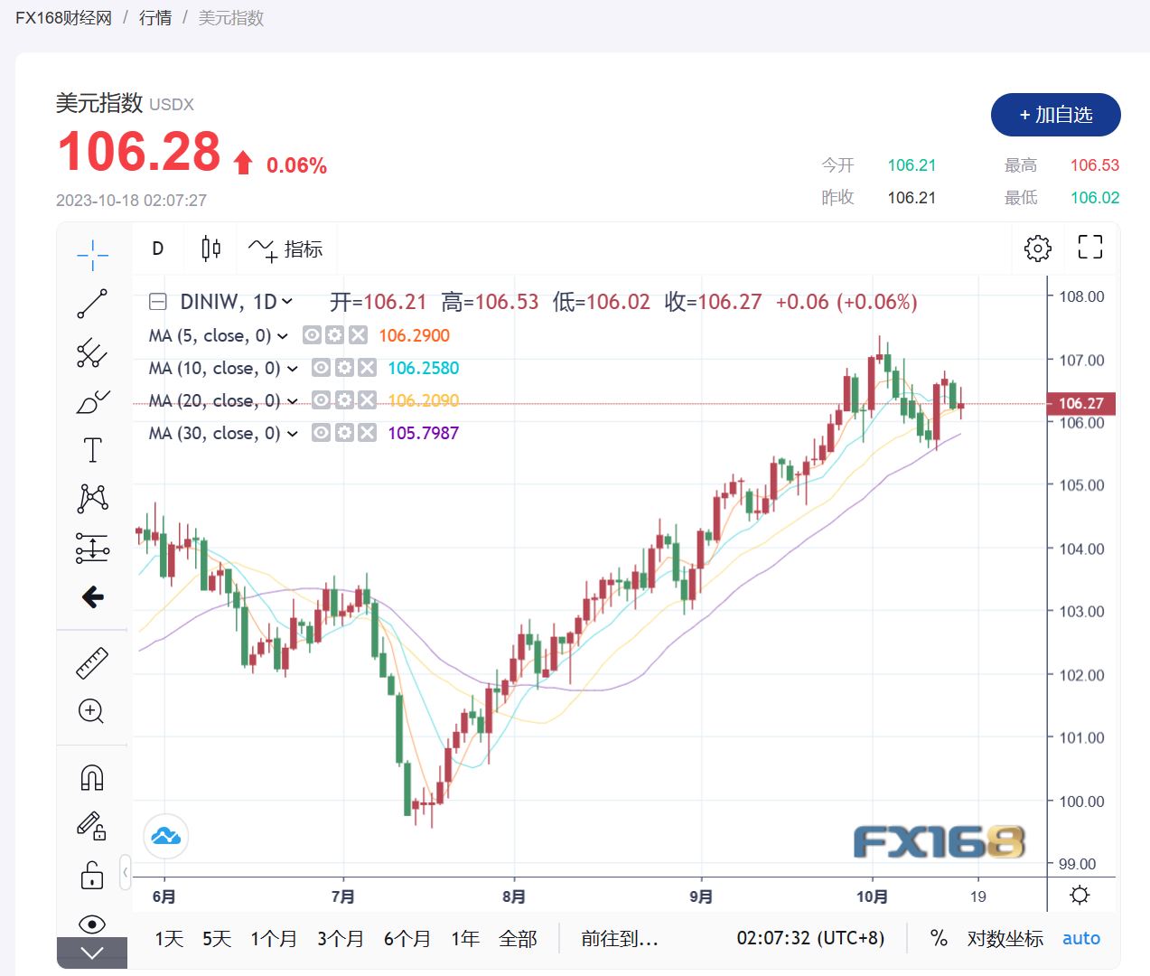 美元指数升至106.53高位后回落,现报106.28,回吐日内涨幅。