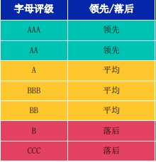 最后,评审团队将根据企业得分的情况,给予相应的等级,从 AAA 到 CCC,共七个等级。
