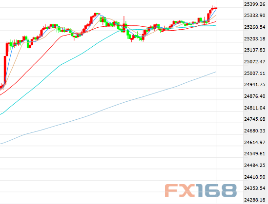(道指5分钟走势图,来源:FX168财经网)