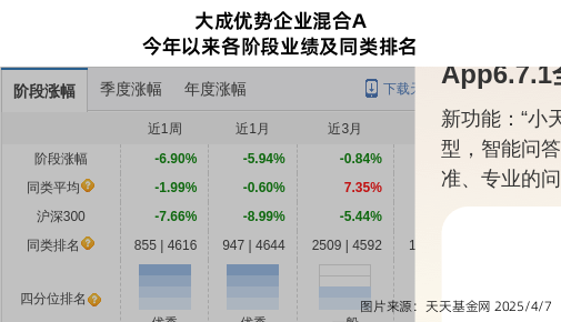 其中,大成高鑫股票A今年以来收益率-2.25%,同类排名4(总28),大成优势企业混合A今年以来收益率-2.55%,同类排名1896(总4592),大成核心价值甄选混合A今年以来收益率-5.15%,同类排名139(总350)。