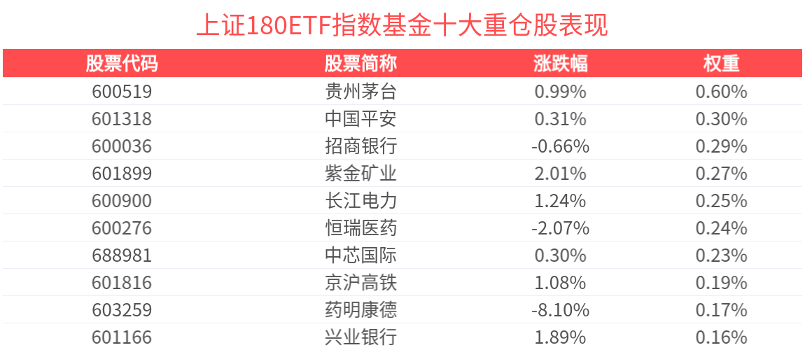 自带杠铃型配置、国企占比最高的宽基ETF——上证180ETF指数基金:90%红利 10%科创。该基金紧密跟踪上证180指数,上证180指数从沪市证券中选取市值规模较大、流动性较好的180只证券作为样本,反映上海证券市场核心上市公司证券整体表现。