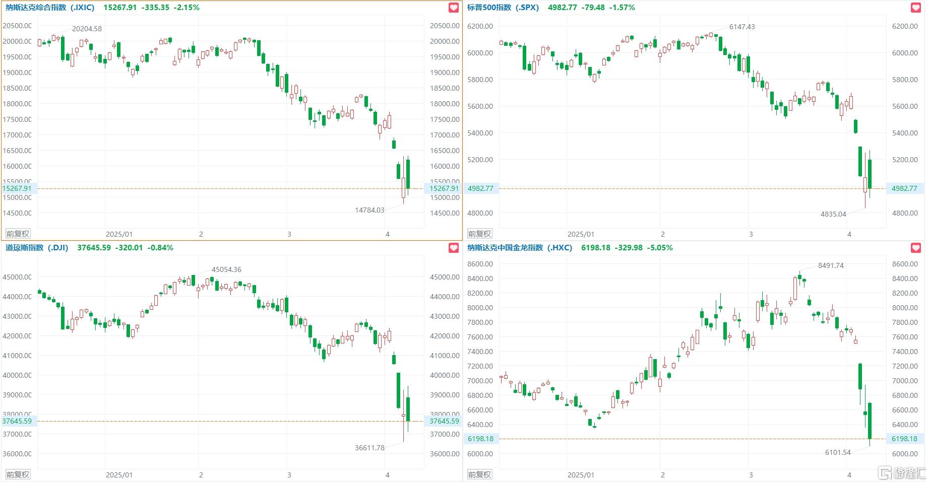 1、美股冲高回落!纳指收跌超2%,苹果跌近5%,中概指数续跌5.05%;
