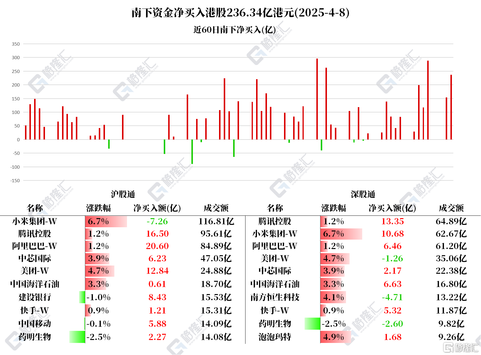 11、南下资金净买入港股236亿港元,大幅加仓腾讯、阿里和美团;