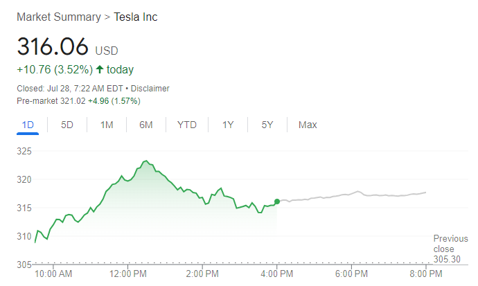 【特斯拉股价走势图,来源:Google】