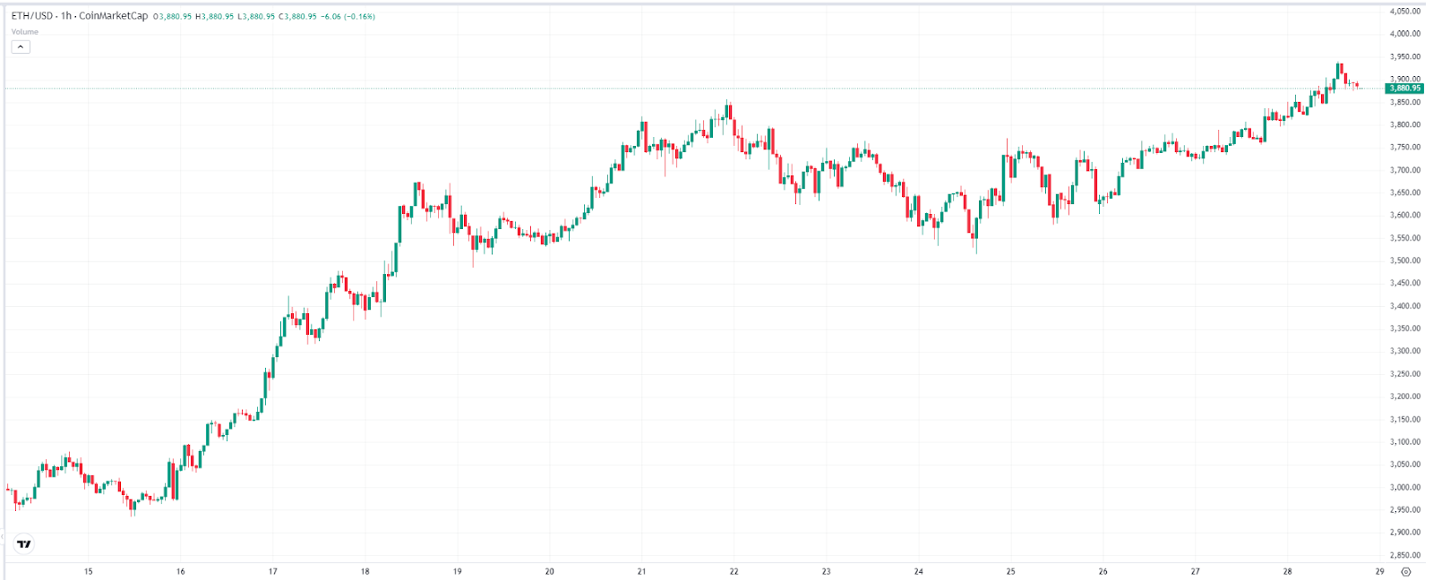 【ETH价格走势图(1小时),来源:TradingView】