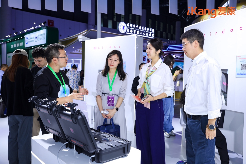通过一张眼底照片可“预警”多种健康风险的视网膜AI评估技术、无需躺平就能监测动态心电的可穿戴智能心贴、能实现“千人千面”健康管理方案定制的AI健康管家iKKie、职场“精神状态”一测即知的AI抗压能力检测……从高效便捷的智能体检到全方位有温度的职场健康守护,沉浸式智能交互的“健康世界”看点与体验感拉满,吸引众多观众驻足并探索,前沿科技带给体检与健康管理的改变在零距离体验中触手可及。