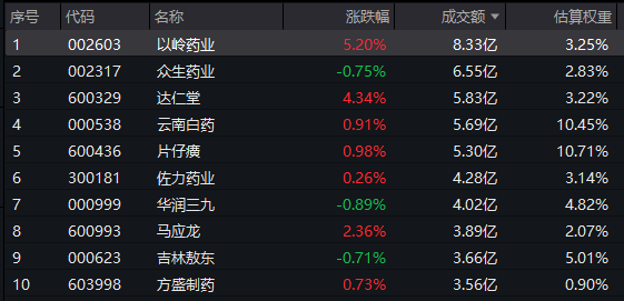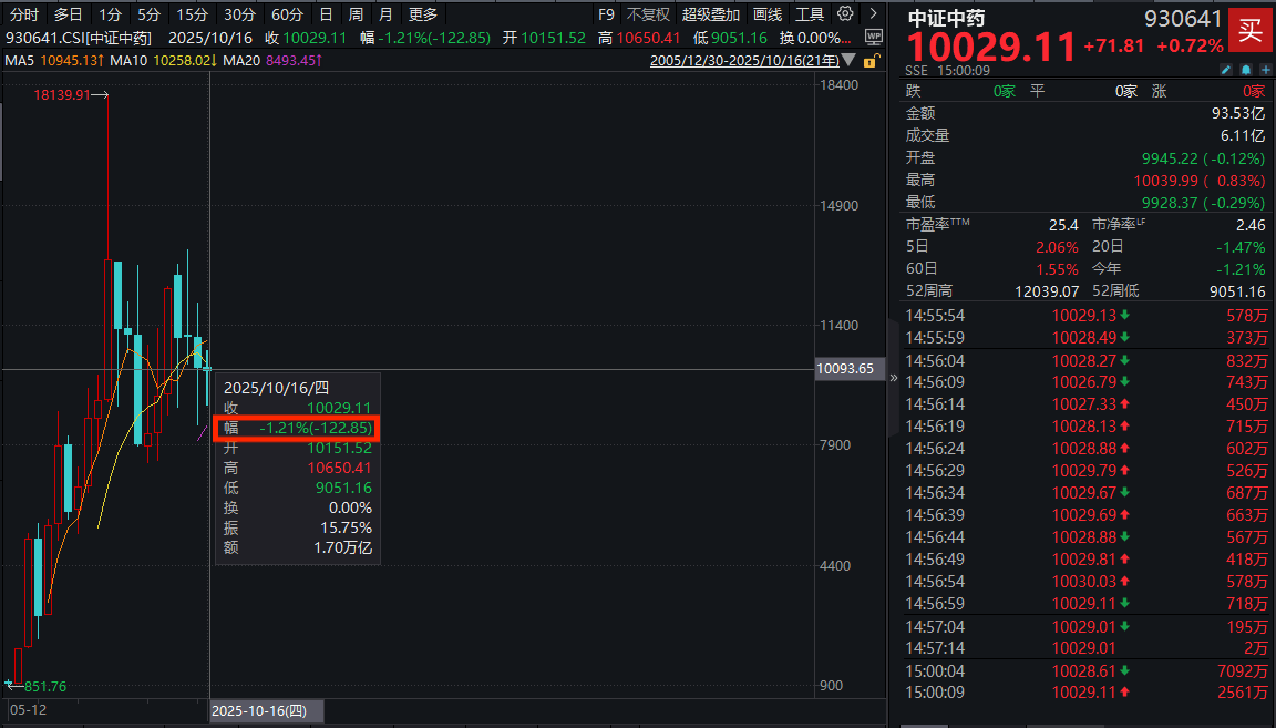 中药ETF(560080)标的指数成分股多数飘红:以岭药业涨超5%,达仁堂涨超4%,马应龙涨超2%,云南白药、片仔癀、佐力药业微涨。成分股消费方面,以岭药业10月16日公布2025年中期权益分派方案,拟每10股派3.0元,股权登记日为10月21日,除权除息日为10月22日,派息日为10月22日,合计派发现金红利5.01亿元。