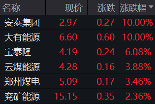 煤炭板块延续强势,大有能源6天5板,安泰集团涨停,宝泰隆、云煤能源、郑州煤电、兖矿能源等跟涨。消息面上,报道指出,进入10月,冷空气频繁影响我国。今年下半年来最强冷空气即将抵达,10月14日起自北向南横扫我国,影响范围可直抵华南。