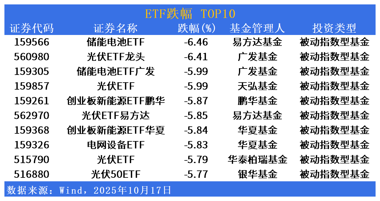 跌幅方面,光伏、储能板块回调居前