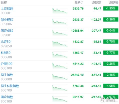 港A股午后跌势难止。截至A股收盘,沪指收跌1.95%,深证成指跌3.04%,创业板指跌3.36%,北证50、科创50均跌超3.7%。