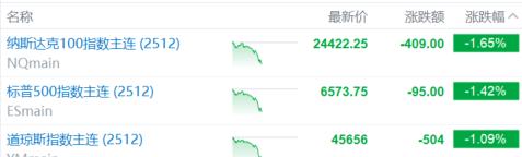 美股盘前,三大股指期货延续跌势。目前纳斯达克100指数期货跌1.65%,标普500指数期货跌1.4%,道指期货跌1%。