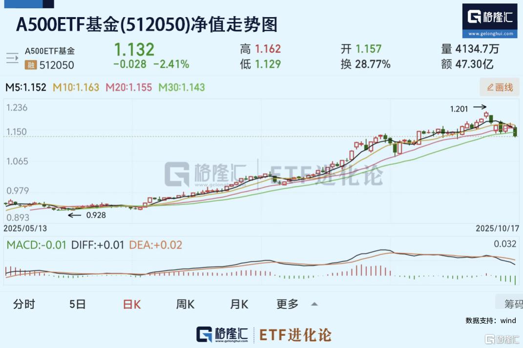 A500ETF基金(512050)日均成交额超30亿元,今日单日成交额达47.3亿元,位列同类第一。通过持有A500ETF基金(512050)投资者相当于同时配置500家A股龙头企业,避免个股研究风险。有效分散单一标的波动影响,A500ETF基金(512050)的均衡配置特性使其成为资产组合的 "稳定器",适合长期持有。