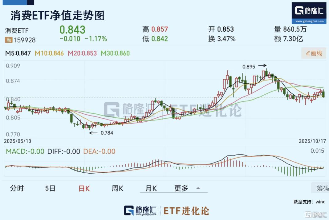 消费ETF本周是组合里表现最佳的ETF,微跌0.35%,收复年内跌幅,转为上涨3.18%。