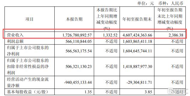 前三季度,寒武纪营业收入为46.07亿元,同比增长2386.38%;净利润为16.05亿元,同比增长321.49%。