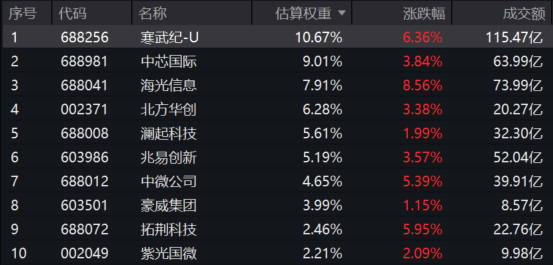 芯片50ETF(516920)标的指数成分股多数飘红:海光信息一度涨超10%,寒武纪-U涨超6%,中微公司涨超5%,中芯国际、北方华创、兆易创新涨超3%。