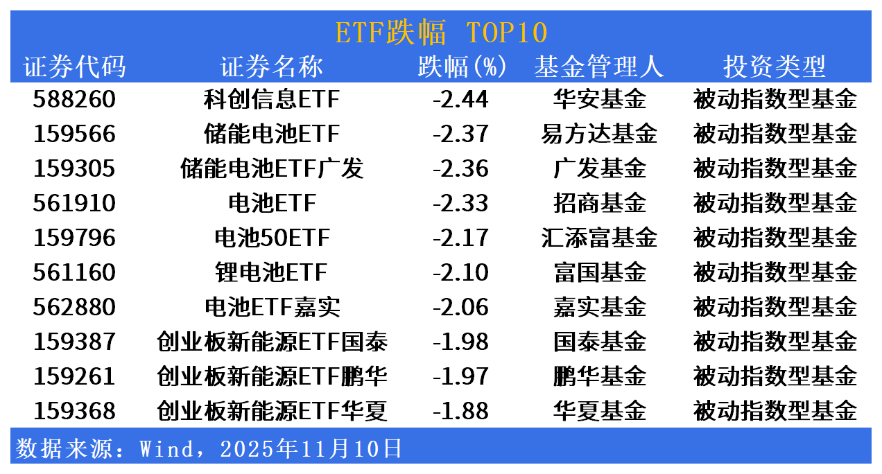 ETF市场日报 | 大消费板块集体上行!储能、电池相关ETF回调蓄势