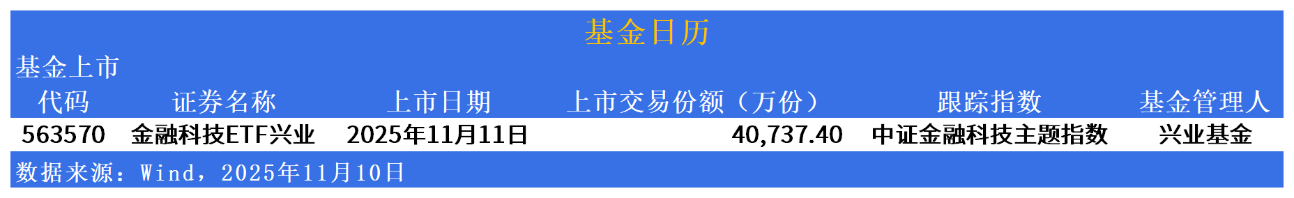 ETF发行市场方面,金融科技ETF兴业(563570)明日上市