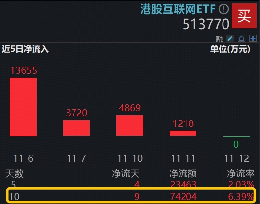 尽管行情波动,已有资金抢跑布局科网龙头财报季。上交所数据显示,港股互联网ETF(513770)近10日有9日获资金增仓,累计吸金7.42亿元。