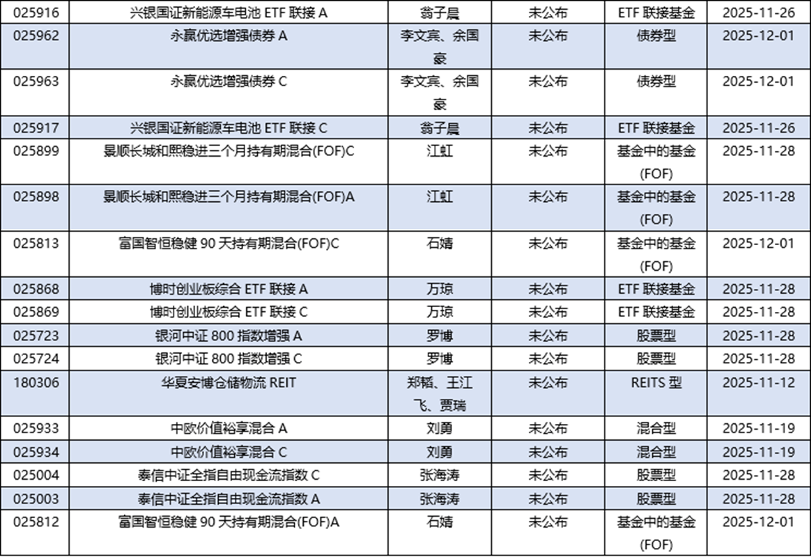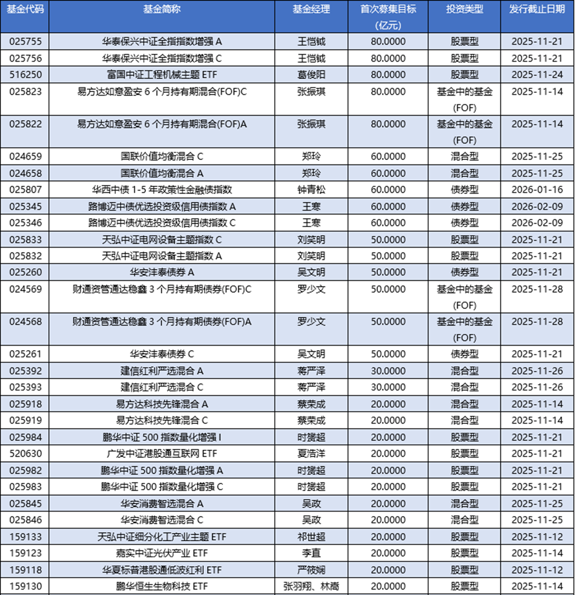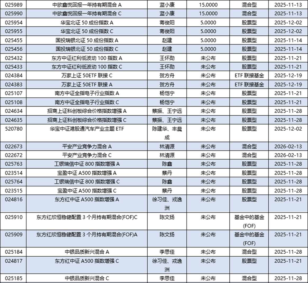 五、 上周(11.10-11.14)新发基金一览(不包含传统封闭式基金)