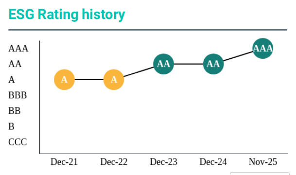 近日,国际权威指数机构摩根士丹利资本国际公司(中文简称“明晟”,英文简称“MSCI”)发布了东方证券股份有限公司(简称“东方证券”)2025年度最新ESG评级结果。东方证券2025年MSCI ESG评级已从AA级提升至全球同业最高AAA级,排名位于全球同业前10%。
