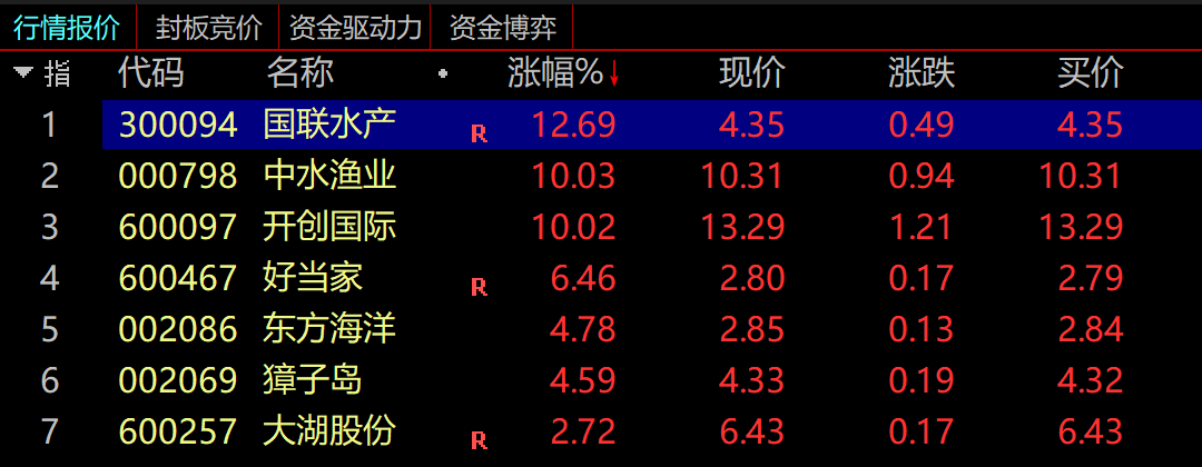 水产养殖也全线爆发,板块涨幅高达7%,国联水产、中水渔业、开创国际等涨超10%。此外,日本对我国依赖度较高的稀有金属板块也表现强势。