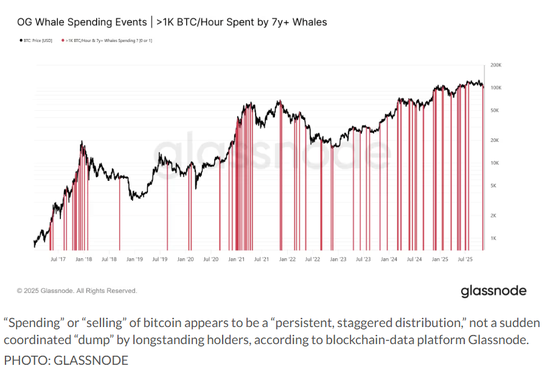 Glassnode数据显示,自2024年12月比特币历史上首次突破10万美元以来,长期持有者的抛售行为有所加剧。