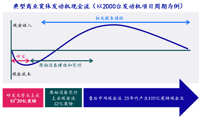 航空发动机采用的也正是这种“刀架 刀片”商业模式,航空发动机的“刀架”,就是发动机整机本身。在销售初期,整机的定价往往需要覆盖研发、测试、生产的部分成本,但由于研发投入极高、研发周期极长,单靠整机销售很难快速盈利,甚至在量产初期仍处于现金流为负的状态。