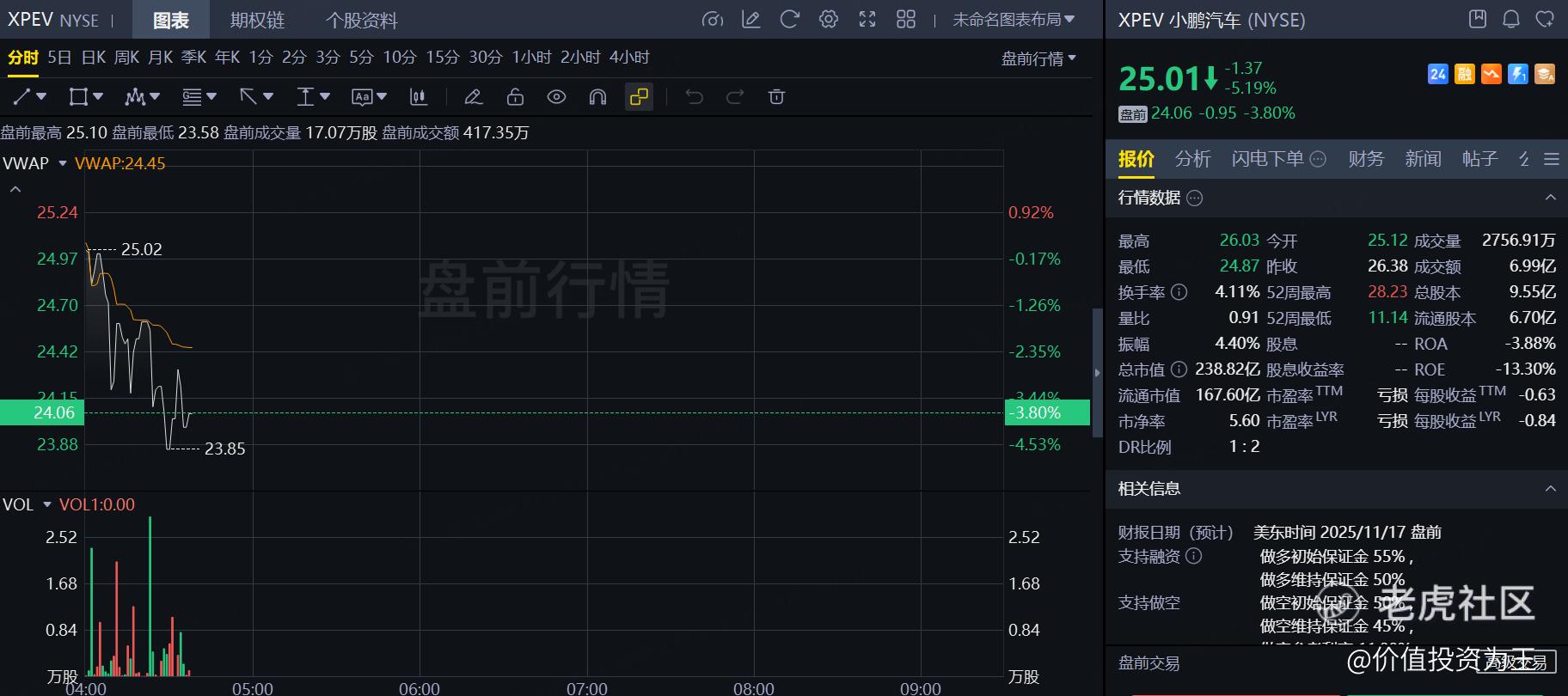 财报发布后,小鹏盘前股价一度跌超4%: $小鹏汽车(XPEV)$
