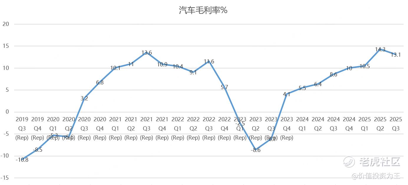 如果看造车业务的毛利率,三季度为13.1%,环比下降1.2个百分点,不及分析师预期的14.4%,管理层称是因为产品换代所至: