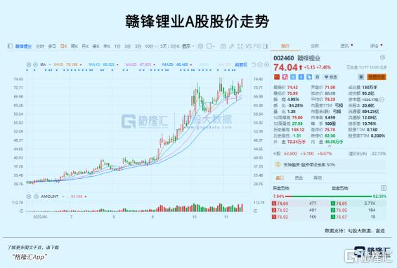受利好消息刺激,今天赣锋锂业A股价收涨7.48%,其港股强势收涨8.78%,创下港股上市以来的新高。