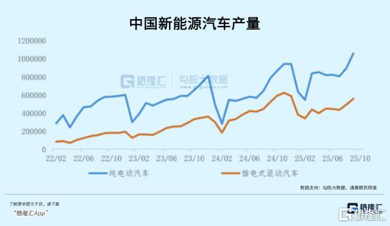 其中,10月新能源汽车产量177.2万辆,环比增长9.59%;销量171.5万辆,环比增长6.12%;累计出口201.4万辆,同比增幅90.36%;中游电解液、磷酸铁锂正极产量也环比提升,对碳酸锂采购需求形成有效拉动。