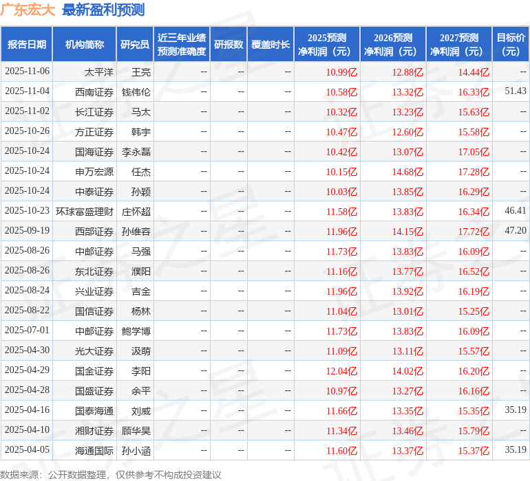 以下是详细的盈利预测信息: