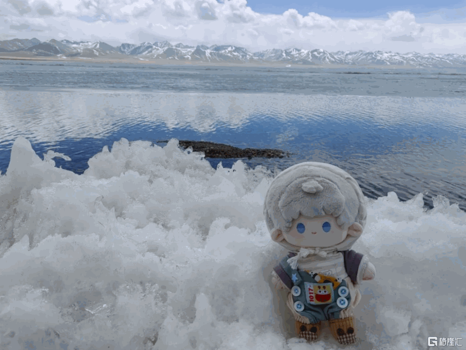 ▲西藏姑娘白玛曲珍带着从拼多多购买的玩偶打卡纳木措。