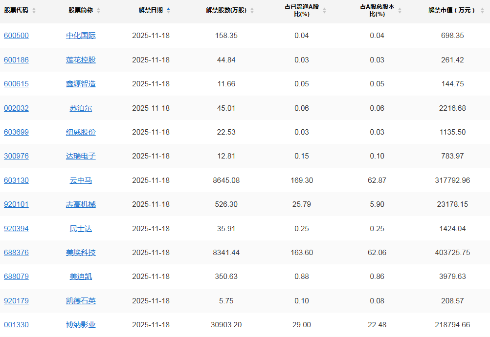 【限售解禁】