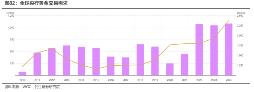 贵金属方面,今年三季度黄金价格同比上涨39.88%。央行购金与降息预期或共同推动金价走强,根据世界黄金协会数据,2024年全球央行年度购金量为1045吨,连续三年购金超千吨。2025年第三季度,全球央行购金量220吨,购金力度较上一季度进一步增长28%。