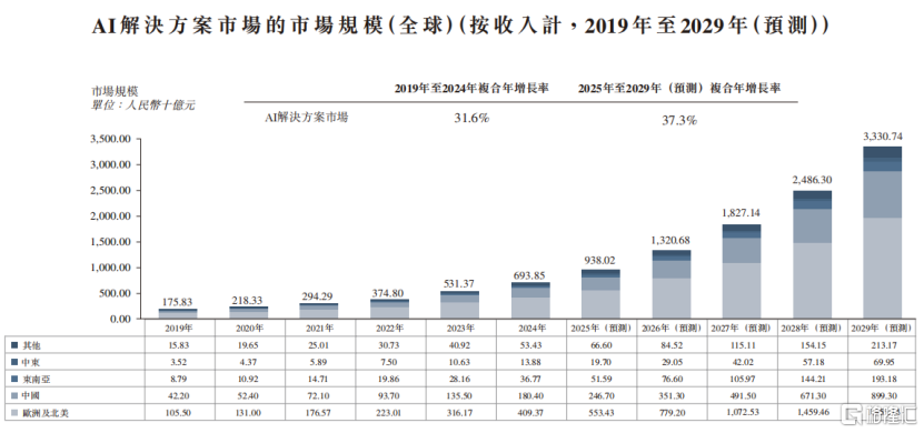 根据弗若斯特沙利文的资料,全球高精度AI解决方案市场正经历爆发式增长,从2019年的477亿元迅速扩张至2024年的2,225亿元;预计到2029年,市场规模将进一步达到14,330亿元,2025年至2029年的复合年增长率将达42.2%。
