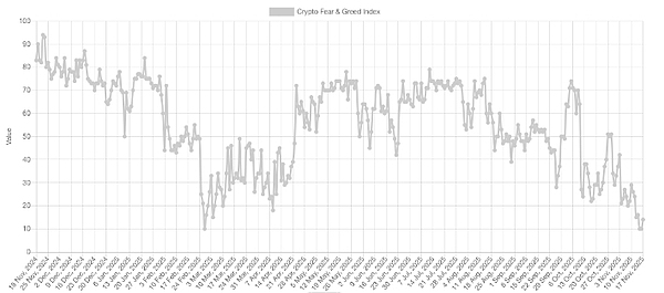 交易员 Daan Crypto Trades 指出:他将当前的市场氛围比作 2022 年加密货币交易所 FTX 在上一次加密货币熊市末期的崩盘。“这个指标根本无法指导行动。它可能在贪婪水平停留数月之久,而市场却持续上涨,就像它可能在恐惧水平停留很长时间一样。”