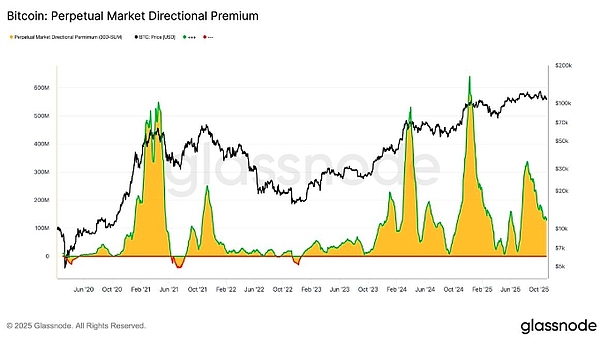 比特币永续合约市场方向性溢价。来源:Glassnode