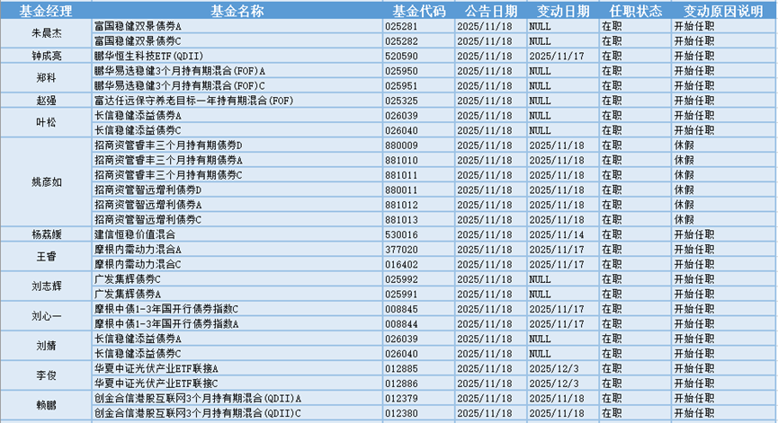 新基金经理上任方面,华夏基金李俊现任基金资产总规模为704.31亿元,管理过的基金多为混合型和指数型基金,任职期间回报最高的产品是华夏中证5G通信主题ETF联接D(023765),为指数型基金,在任职的229天时间内获得110.30%的回报,至今仍在管理该基金。新上任华夏中证光伏产业ETF联接A、华夏中证光伏产业ETF联接C这两只基金产品的基金经理。
