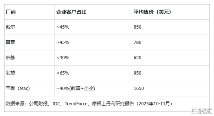 上述摩根士丹利的报告亦认为,联想在 PC 业务上由于企业与商用客户占比高,其抗成本冲击能力显著优于 Dell/HP 等依赖消费渠道的厂商。