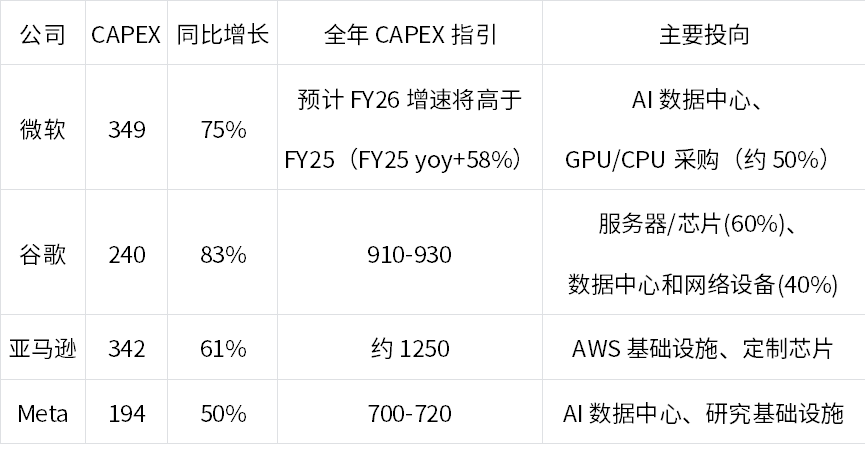 表1:2025年Q3四大云巨头资本开支对比(单位:亿美元)