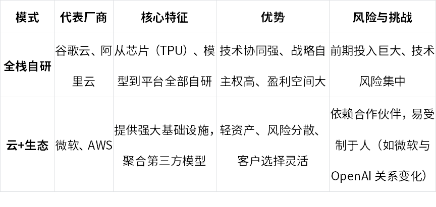 表3:全球AI云巨头两种发展模式对比