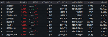 成份股方面,晶晨股份领涨超11%,福昕软件、海天瑞声涨逾3%,云从科技、亚信安全涨超2%,寒武纪、金山办公、星环科技、合合信息逆市涨逾1%。