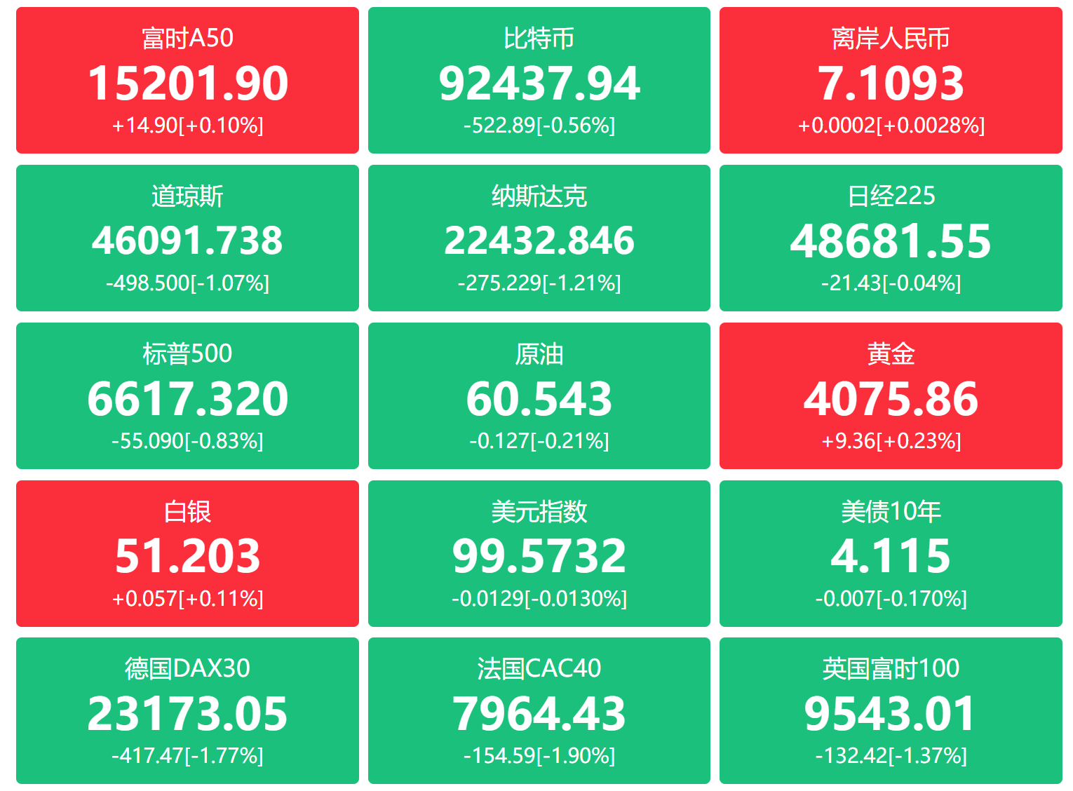 1、美股大跌,主要指数跌超1%,大型科技股普跌,亚马逊、AMD跌超4%,微软、英伟达跌超2%。降息预期生变和AI泡沫阴影笼罩全球市场。