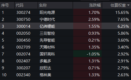 电池50ETF(159796)标的指数成分股涨跌不一,宁德时代涨超2%、阳光电源、亿纬锂能涨超1%,天赐材料强势翻红涨超1%,阳光电源、三花智控等涨幅居前!